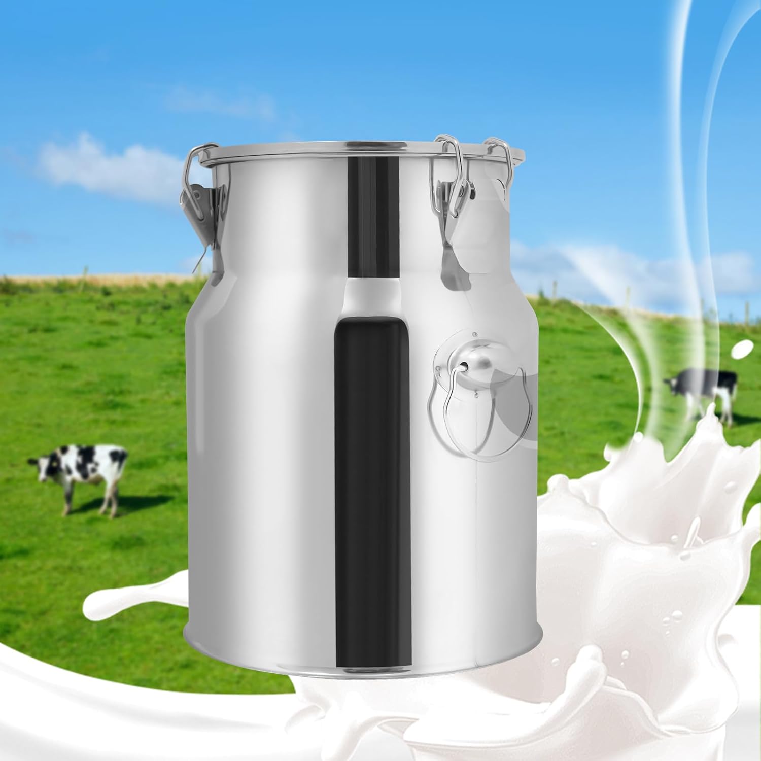 - Milk Can with Sealed Lid - The stainless steel pail is sealed with all-around silicone to ensure no leakage so that people can use it with confidence. The storage bucket is equipped with 3 sealing clips that can hold the lid securely in place, which prevents liquids from spilling during handling.