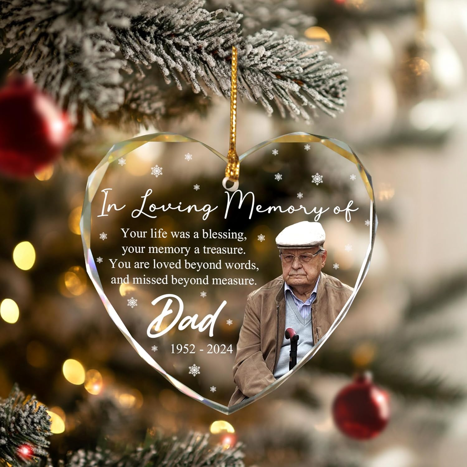 - ❤️ Personalized Photo Ornament for Dad’s Memory: Add a cherished photo and the name or title “Dad” to honor a father who meant the world to you. This touching ornament becomes a lasting tribute, celebrating his life, love, and the memories shared with his family.