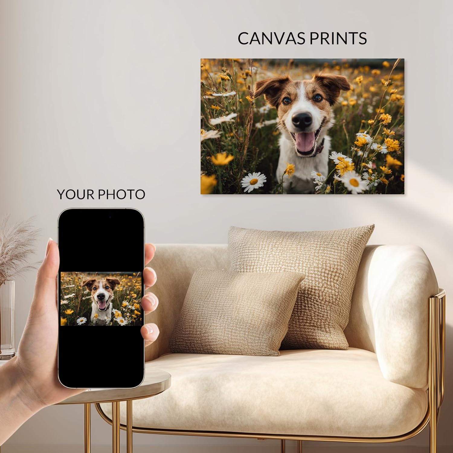 - 【Custom Canvas Paintings】: Combine pictures with modern techniques to create stunning wall decorations. Whether you choose a fun personal portrait photo of your family or friends or pet, or a family vacation photo, you won't be disappointed when the walls are covered with your precious memories. Print photos to remember every precious moment, click the "Customize now" button first to create a one-of-a-kind creation