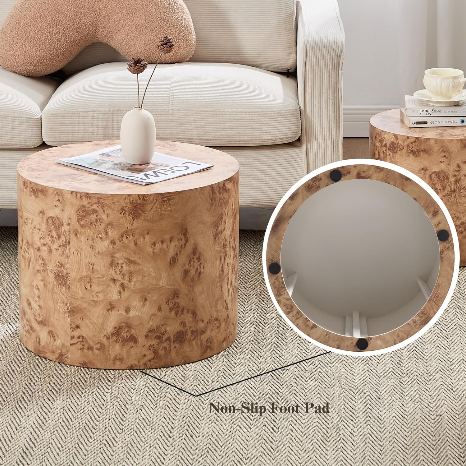 Round Coffee Tables Side Table Set of 2, Wood Nesting End Table for Living Room Balcony Office, Walnut Wooden Color, Natural Burl Color, No Assembling